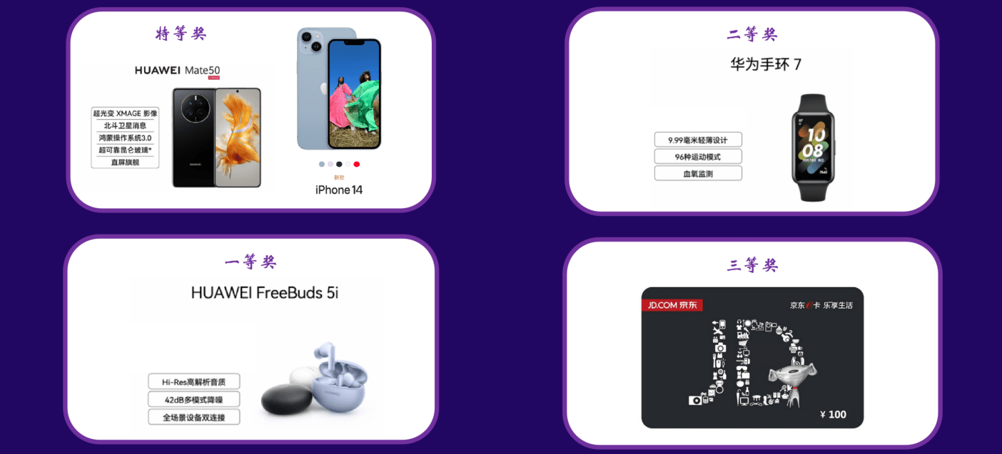 活动期间获得的“百测码”均有机会被抽中,获得以下奖品